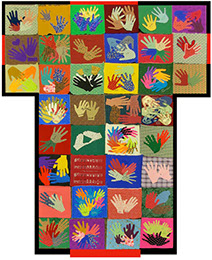 Photo caption: This robe was created by the whole community, and sewn together by Caroline Sider. Beth Huffnagle and Patti Hess provided leadership for insuring the whole community could partcipate.