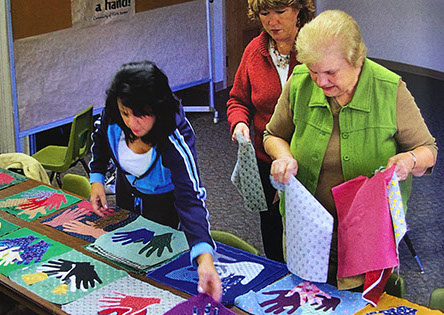 Photo caption: This robe was created by the whole community, and sewn together by Caroline Sider. Beth Huffnagle and Patti Hess provided leadership for insuring the whole community could partcipate.